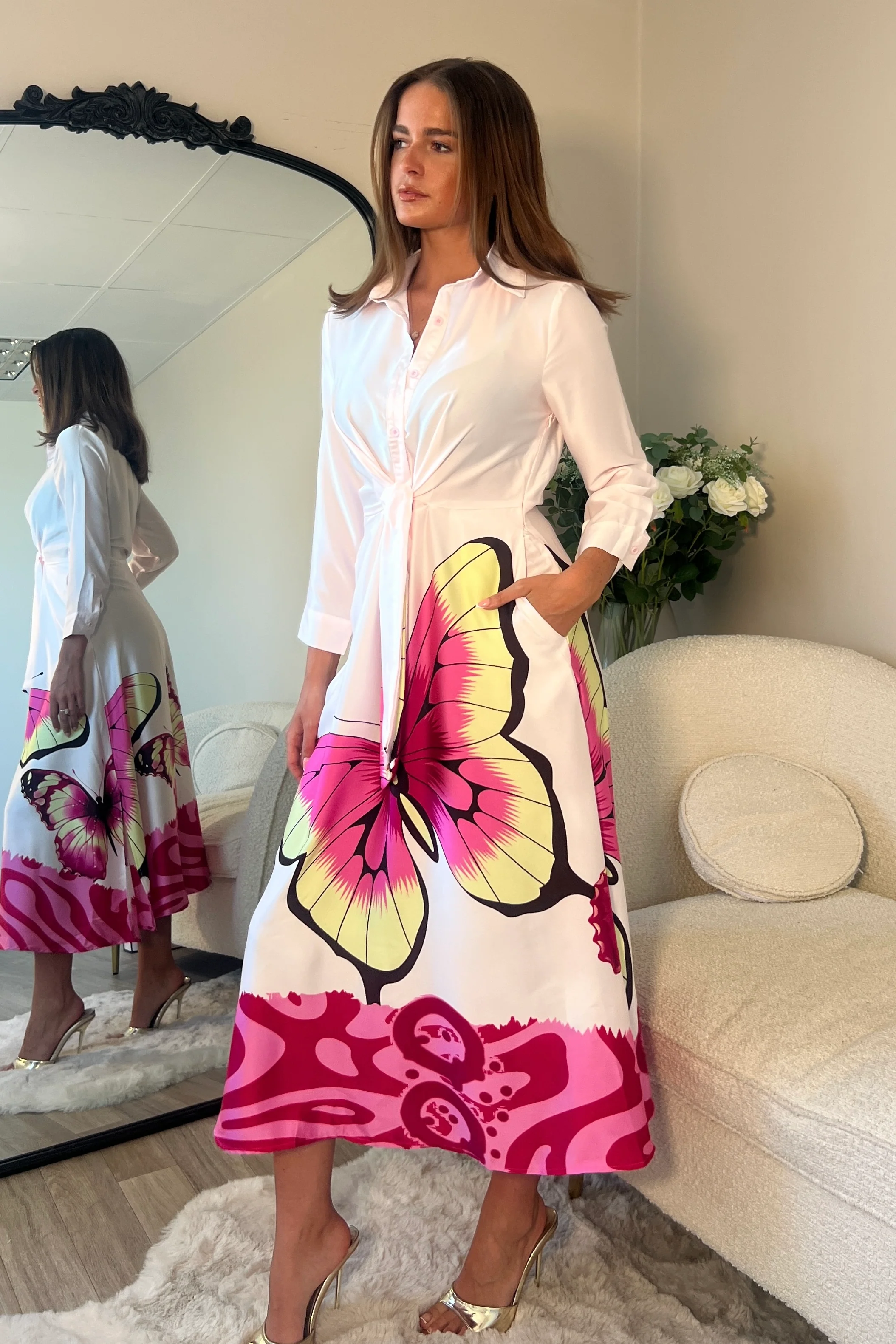 Isabella Pink Butterfly Tie Front Shirt Dress